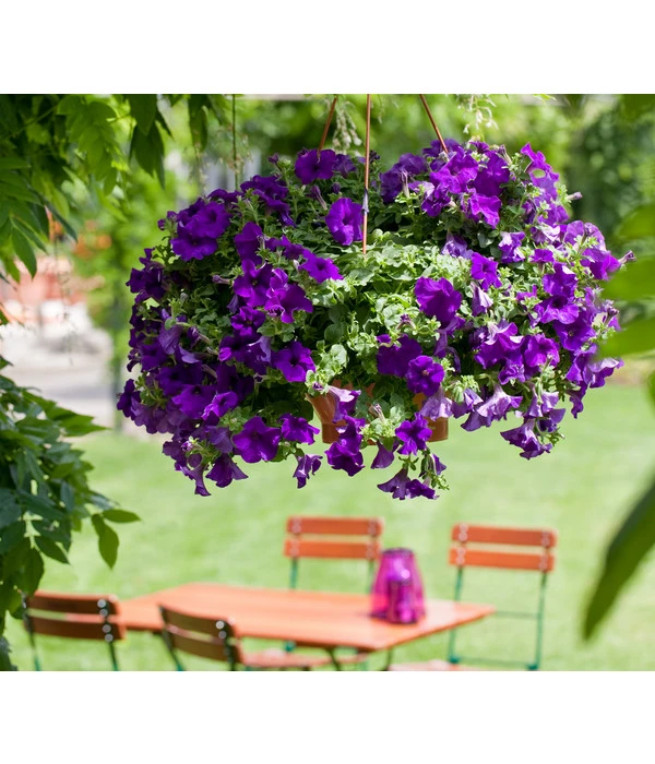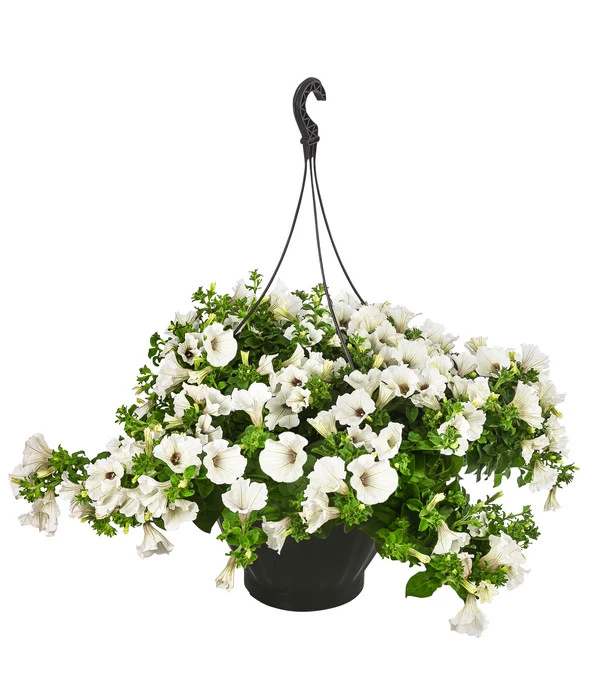 Die robusten Hängepetunien kommen in einer dekorativen und üppig bepflanzten Ampel bei Ihnen an und versprechen beste Dehner-Premiumqualität. Als Zierde für Ihren Balkon, Ihre Terrasse oder Ihren Hauseingang werden sie ein echter Blickfang sein. Am besten wählen Sie für die Ampel einen sonnigen oder halbschattigen Standort und versorgen Sie die Pflanzen reichlich mit Wasser. Sind die Grundbedürfnisse der Hängepetunie-Ampel erfüllt, wird sie sich ständig in vollem Blütenflor präsentieren. Zögern Sie nicht länger und bestellen Sie noch heute die Dehner Hängepetunie in Ampel direkt zu sich nach Hause.