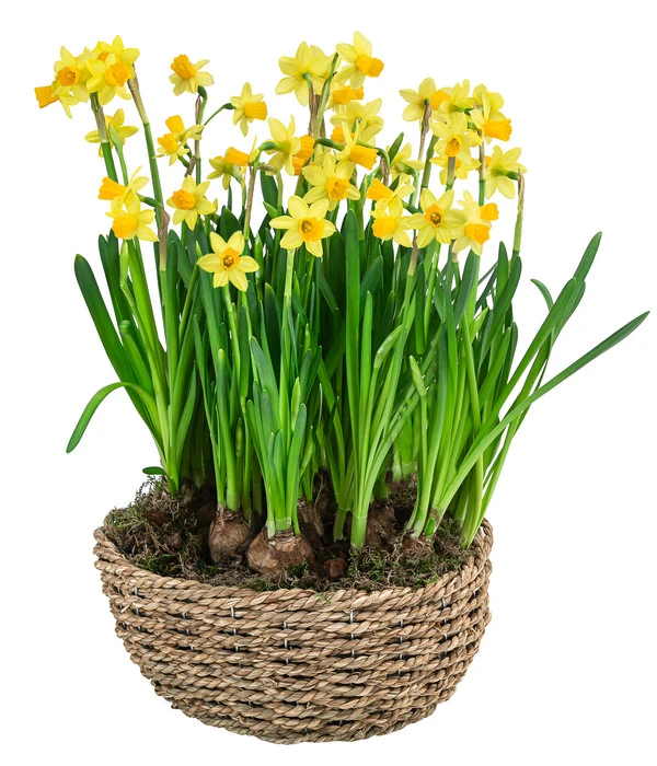 Sonnengelbe Schönheiten im praktischen Korb: Korb mit Narzissen