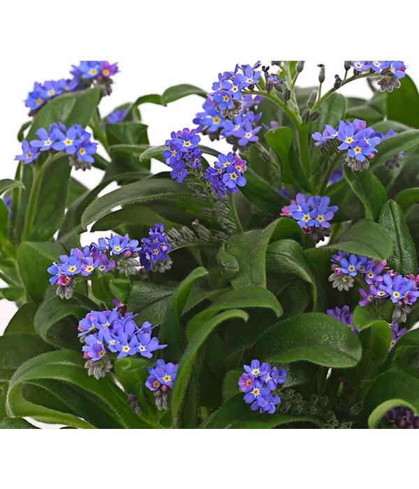 Das auch in Europa beheimatete und sehr bekannte Vergissmeinnicht blüht nicht nur reichlich sondern auch besonders ausdauernd. Die kleinen Einzelblüten changieren von rosa in ein strahlendes Blau und sitzen so zahlreich auf der kompakt wachsenden Pflanze dass sie einen wunderbaren Kontrast zu dem flaumigen, dunkelgrünen Laub bilden. Unzählige Mythen gibt es über die Namensgebung des Vergissmeinnichts. Eine davon besagt, dass die kleine Gartenpflanze Gott bat, sie nicht zu vergessen, als er gerade Namen für alle erschaffenen Pflanzen vergeben hat. So hat es das Vergissmeinnicht geschafft, auch in unseren Köpfen zu bleiben und ist somit zu einem unverzichtbaren Frühlingsblüher geworden.